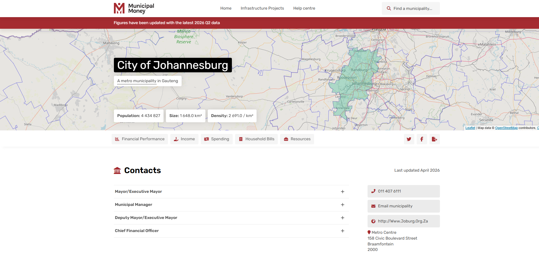 The Municipal Money dashboard makes it easy to understand how your municipality spends public funds, including your tax money. For example, you can use the dashboard to find out exactly how much your municipality is spending on specific infrastructure projects, including community parks, botanical gardens and beach clean up initiatives.