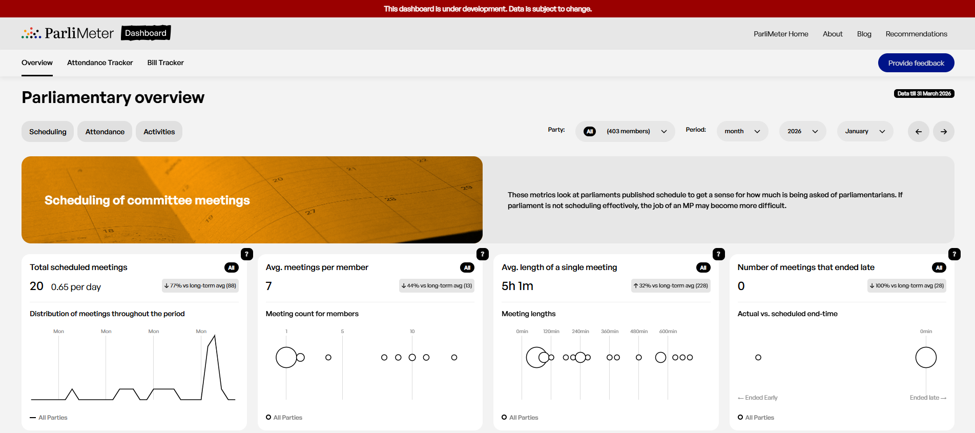 Use the ParliMeter dashboard to track parliamentary bills and committee action on key issues relating to conservation and the environment. Follow the progress of legislation that affects climate policy, biodiversity protection, and environmental regulation to see how your parliamentary representatives are engaging with issues that concern your community and the planet.